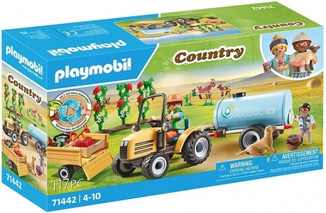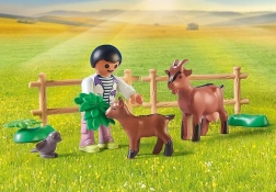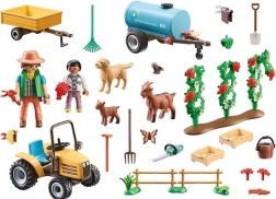 Sada obsahuje: dve figúrky Playmobil, psa, dve kozy, traktor s prívesom, cisterna na vodu a množstvo ďalších doplnkov, ktoré pridávajú na realistickosti príbehov.