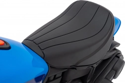 Bohatý audio panel s FM rádiom, Bluetooth, vstupmi USB, SD, AUX a prehrávaním MP3 doplní jazdu obľúbenou hudbou. O realistickosť sa stará svetlomet LED a štart na tlačidlo s efektom zvuku motora. Ergonomické sedlo 22 × 16 cm zvyšuje pohodlie pri dlhších vychádzkach.