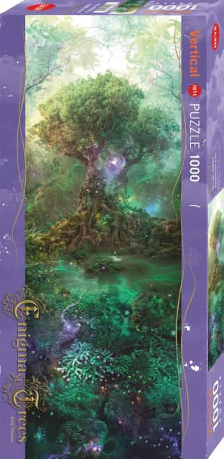 Vertikálne puzzle HEYE Enigma Trees – Draslíkový strom ponúka nevšedný formát, ktorý sa skvele hodí na úzke steny či do rámov neobvyklých rozmerov. Precízne vyrezané dieliky, sýte farby a umelecký motív robia z tohto puzzle výborný darček aj zberateľský kúsok.