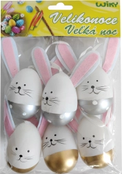 Dekoratívne plastové maľované vajíčka na zavesenie 6 cm, 6 ks