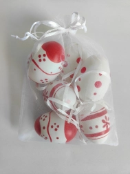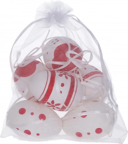 Dekoračné maľované plastové vajíčka s veľkosťou 6 cm sú ideálne pre vaše sviatočné dekorácie. Získate 6 kusov v elegantnom organzovom vrecúšku.
