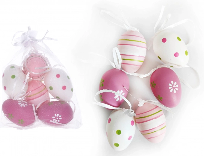 Tieto dekoratívne plastové vajíčka sú ideálnou voľbou na zdobenie vášho domova počas veľkonočných sviatkov alebo iných príležitostí. V každom balení nájdete 6 maľovaných vajíčok, ktoré dodajú vášmu interiéru veselé farby a pôvab.