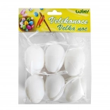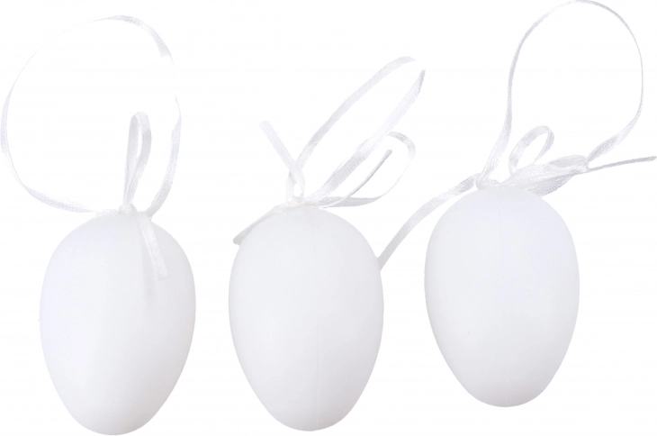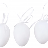 Elegantné dekoratívne plastové vajíčka v biele farbe, ideálne na zavesenie a ozdobenie vášho interiéru.