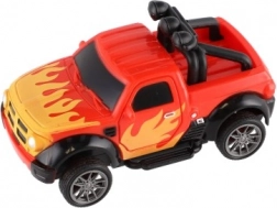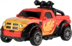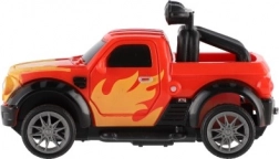 Vďaka zotrvačníku v zadných kolesách je jazda plynulá a zábavná. Športový vzhľad s plameňmi a výraznými detailmi podčiarkuje dobrodružný charakter hračky. Farebnú variantu (červená alebo modrá) dodávame podľa aktuálnych skladových zásob.