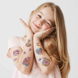 Dočasné tetovania sú ideálne na narodeninové párty, detské tábory aj domáce tvorenie. Vďaka kvalitnej potlači krásne vyniknú a na pokožke vydržia niekoľko dní, pritom ich možno ľahko odstrániť jemným umývaním.