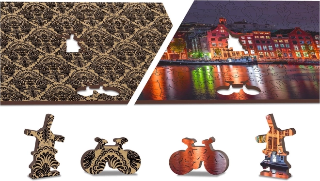 Objavte radosť zo skladania s dreveným puzzle Nočný Amsterdam od značky WOODEN CITY. Toto puzzle sa skladá z 75 starostlivo vypracovaných dielikov, ktoré vďaka laserovej technológii majú hladké hrany bez triesok a sú vyrobené z HDF dosky. Puzzle je obojstranné, takže môžete vybrať medzi zložením podľa obrazu alebo podľa tvarov na zadnej strane.
