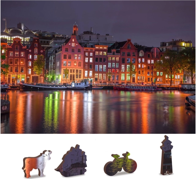 Každý dielik je jednak súčasťou celku, ale má aj svoj vlastný jedinečný tvar predstavujúci mestské stavby, zvieratá alebo predmety. Zároveň je skladanie o to náročnejšie, čo prispieva k vyššej zábave a výzve. Puzzle taktiež zdobí krásna scenéria Amsterdamu v noci, ktorá je perfektne vyrytá do každého dielika.