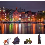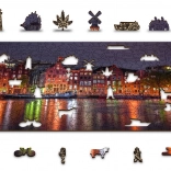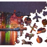 Drevené puzzle Nočný Amsterdam s unikátnymi dielikmi