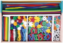 - Univerzálne použitie – papier, penová guma, chlpaté drôtiky, očká, bambuľky, drevené tyčinky, gombíky a ďalšie.