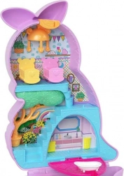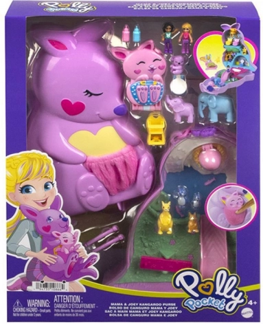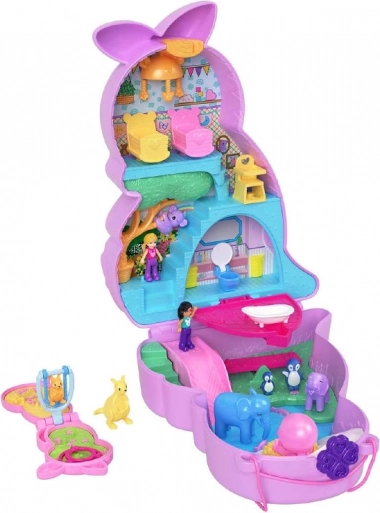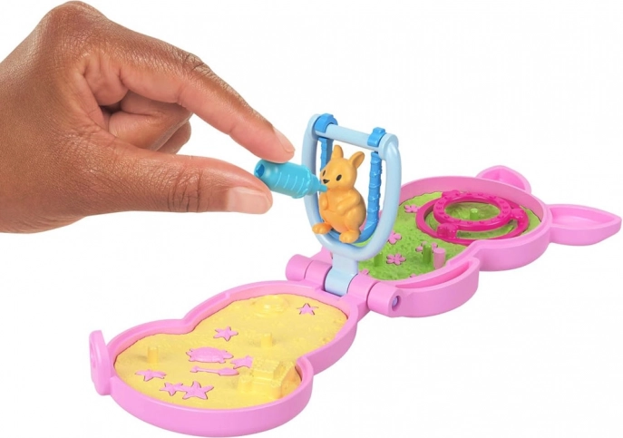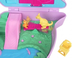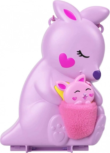 Vreckový herný svet Polly Pocket v rozkošnej kabelke v tvare klokana prináša skladací domček plný mini izbičiek, zábavných prvkov a zvieracích kamarátov. Vďaka ramennému popruhu je set ľahko prenosný a ideálny na cesty. Vo vnútri nájdete šmýkačku, hojdačku, bazénik, tajné vajce s tučniakom aj doplnky na starostlivosť o zvieratká – o hranie a fantáziu nebude núdza.