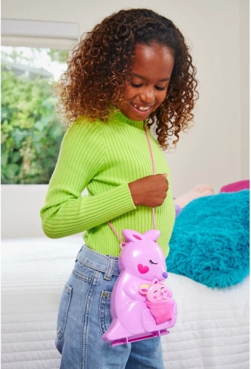 Objavte kúzelný mini svet, ktorý sa ukrýva v kabelke v tvare klokana. Po otvorení čakajú deti rôzne úrovne s izbičkami – spálňa pre mláďatá, jedálenský kútik s kŕmiacou stoličkou a kúpeľňa s vaňou. Nechýba stromové stanovište pre koalu, vodná zóna s jazierkom ani interaktívne prvky pre nekonečné príbehy.