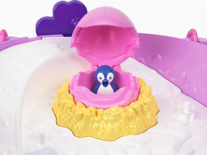 Dolná časť setu je skutočný zábavný park: deti si zamilujú šmýkačku do vodnej plochy, hojdačku aj tajomné vajíčko, z ktorého „vykukne“ rozkošný tučniak. Malý klokan navyše ukrýva druhý minipriestor pre ešte viac hrania. V balení sú mini bábiky, zvieratká a množstvo príslušenstva na starostlivosť a kŕmenie.