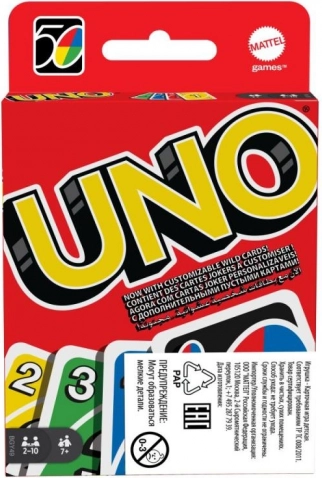 UNO je nadčasová kartová hra, ktorú sa naučíš za minútu a budeš ju milovať roky. Cieľom je zbaviť sa všetkých kariet prikladaním podľa farby alebo čísla a múdro využívať akčné karty, ktoré prevrátia hru vo tvoj prospech. Novinkou sú 3 prepisovateľné divoké karty, s ktorými si môžeš nadefinovať vlastné pravidlá a dodať každej partii čerstvú energiu.