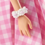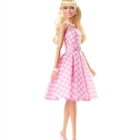 Táto filmová bábika BARBIE vyniká nadčasovým štýlom a detailným vyhotovením. Má dlhé blond vlasy zviazané ružovou stuhou, ktoré doladzujú náušnice a náhrdelník so sedmokráskami. Ružovo-biele kockované šaty vo vintage štýle zvýrazňuje plisovaná sukňa a opasok, zatiaľ čo ružové lodičky na podpätku dodávajú outfitu šmrnc.