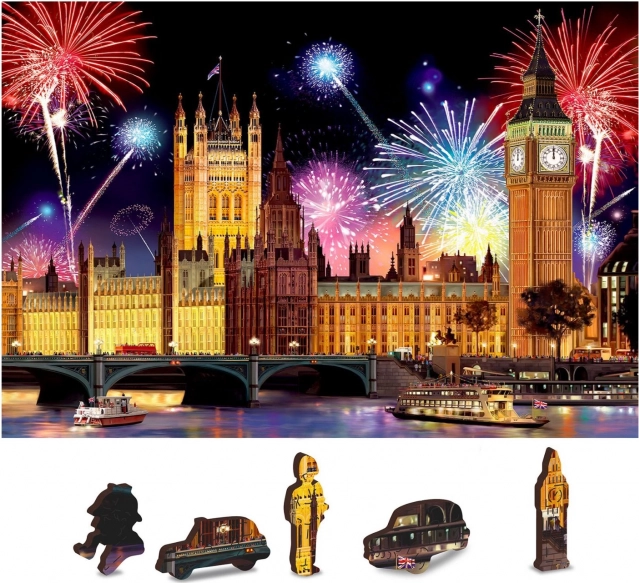 Naše drevené puzzle 'Londýn v noci s ohňostrojom' je nielen zábavné, ale tiež vzdelávacie a dekoratívne. Precíznosť spracovania zaisťuje dlhú životnosť a možnosť opakovaného skladania.