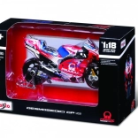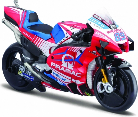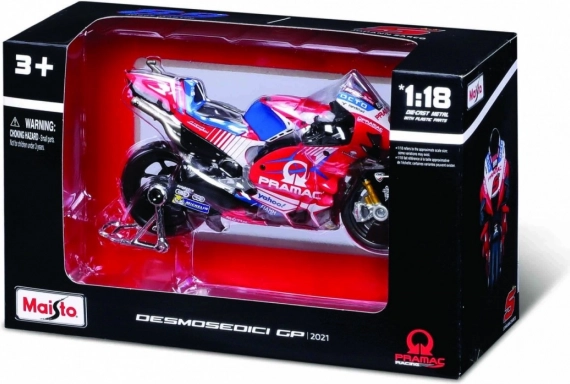 Tento detailne spracovaný model pretekárskej motorky DUCATI PRAMAC vychádza zo stroja DESMOSEDICI GP. V mierke 1:18 vyniká vernou aerodynamikou, realistickými kolesami a kvalitným lakovaním v ikonickej kombinácii červenej, modrej a bielej farby. Ideálny pre zberateľov, fanúšikov MotoGP aj ako štýlová dekorácia.