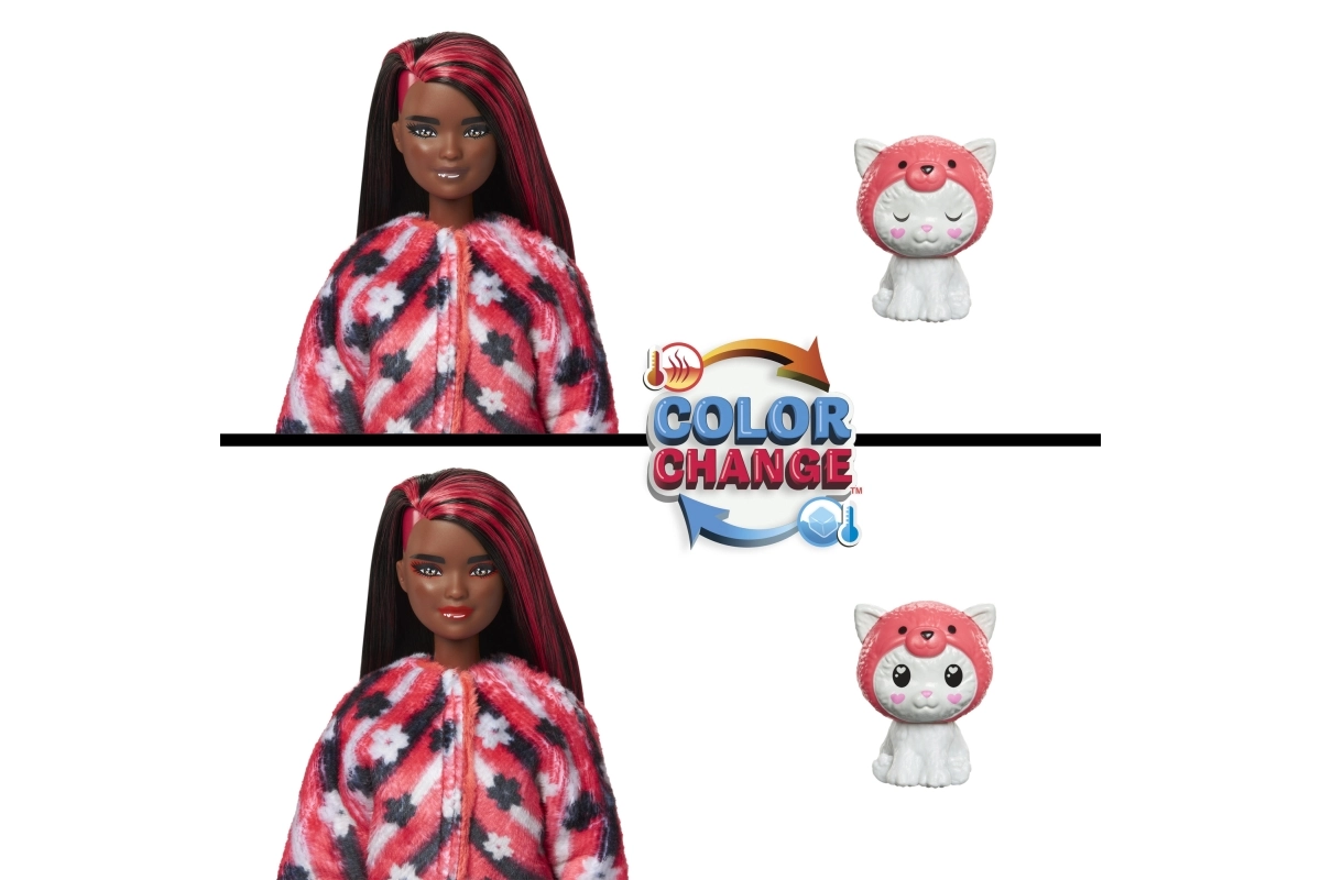 Bábiky Barbie Cutie Reveal zo série Kostýmové zvieratká prinášajú fantastickú zábavu s 10 prekvapeniami! Nájdeš v nich zvieratko prezlečené za iné zvieratko. Objav mačku ako červenú pandu, psa ako žabu, medvedíka ako delfína alebo zajačika ako koalu. Vyzleč kostým a odhaľ bábiku Barbie s dlhými vlasmi, ktorú môžeš polohovať do rôznych póz. Uži si prekvapenia, ako sú topánky, kabelka a minifigurka domáceho miláčika. Po otočení naruby sa z vrchnej časti kostýmu stane kabátik z mimoriadne mäkkého materiálu a hlava kostýmu sa dá premeniť na skrýšu pre mini zvieratko. Objav kúzelnú premenu a pomocou studenej vody zmeň farbu na tvári bábiky – teplá voda ju vráti do pôvodnej podoby. Takto môžeš meniť aj vzhľad zvieratka! Deti si zamilujú objavovanie roztomilých prekvapení a zbieranie bábik z tejto série Barbie Cutie Reveal. Predáva sa samostatne, podľa dostupnosti. Bábiky samostatne nestoja. Farby a dekoratívne prvky sa môžu líšiť.