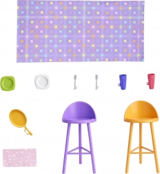 Súčasťou je 11 doplnkov vrátane riadu, dvoch stoličiek, uteráčika a dečky. Vysúvateľný stolík v kuchyni rozširuje možnosti hry.
