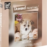 Diamantové maľovanie je kreatívna technika, pri ktorej pomocou aplikačného pera nanášate drobné kamienky na predtlačené a samolepiace plátno. Každý kamienok má svoje miesto podľa legendy, takže tvorenie je intuitívne, upokojujúce a vhodné aj pre začiatočníkov. Hotový obraz s motívom roztomilého šteniatka sa stane krásnou dekoráciou vášho domova.