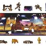 Prinesite si kúsok Londýna domov s fascinujúcim dreveným puzzle Nočný Londýn 2v1. Táto skladačka obsahuje celkovo 150 dielikov, z ktorých 30 je unikátne tvarovaných, zobrazujúcich ikonické stavby a symboly hlavného mesta Veľkej Británie. Pri skladaní sa pripravte na vyššiu obtiažnosť vďaka rôznorodo tvarovaným dielikom, ktoré predstavujú výzvu aj pre skúsených skladateľov.