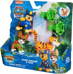 Vytvor si vlastné dobrodružstvá s Chasom, Stopárom a ich tigrím kamarátom. Chase, Tracker a tiger sú vysokí viac než 5 cm a vyzerajú presne ako v televíznom seriáli. Keď príde čas na napínavú záchrannú akciu, pripevni sieťovú strelku k tigrímu chvostu, potiahni chvost čo najďalej a potom stlačením tlačidla vystreľ a zachráň situáciu. Využi svoju fantáziu a prehrávaj si obľúbené epizódy seriálu Tlapková patrola: Hliadka v džungli alebo vytváraj úplne nové misie. Pre ešte viac zábavy a vzrušujúcich misií inšpirovaných seriálom Tlapková patrola zozbieraj všetky hračky z filmu Tlapková patrola: Hliadka v džungli a Tlapková patrola: Veľký film, ako je úžasná veliteľská vzducholoď, a tiež všetky špeciálne hračky Tlapkovej patroly pre dievčatá a chlapcov, ako sú figúrky a sady Veľké šteniatka, Vodná hliadka a Veľký nákladiak (každá sa predáva samostatne). S hračkami Tlapkovej patroly pre predškolákov môžu deti prostredníctvom hry rozvíjať svoju predstavivosť a motorické zručnosti a znovu prežívať svoje obľúbené scény zo seriálu. Uži si nekonečné dobrodružstvá so sadou figúrok Chase, Tracker a Tiger zo seriálu Hliadka v džungli.