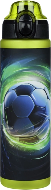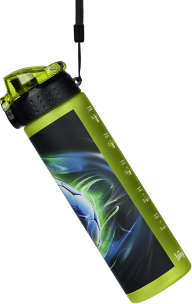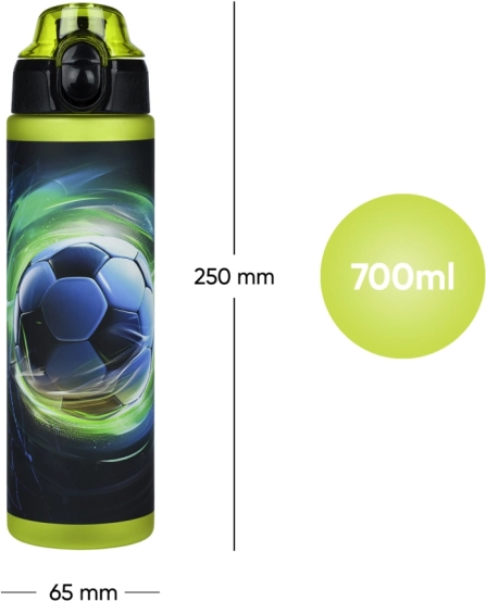 Štýlová futbalová potlač a bočná ryska na kontrolu pitného režimu. Ideálna do školy, na tréning aj cesty.