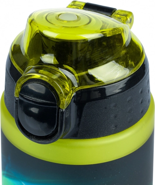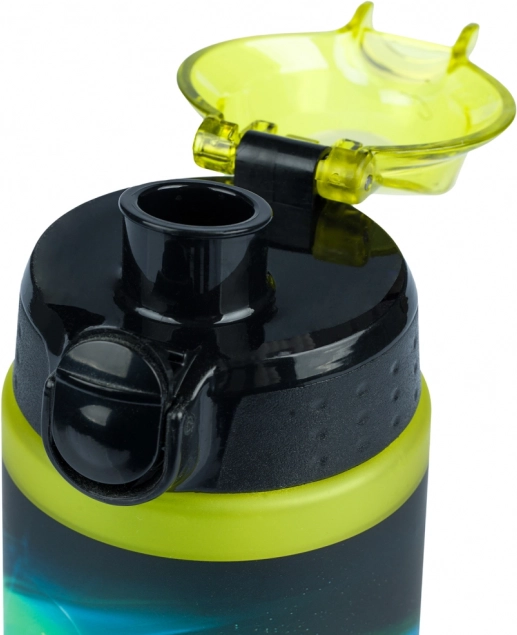 Flip-top viečko s poistkou zabraňuje nechcenému otvoreniu v batohu a spoľahlivo bráni pretekaniu nápoja.