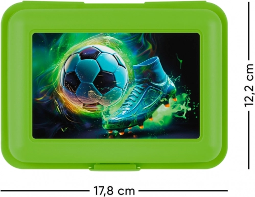 Udržte desiatu čerstvú a prehľadne usporiadanú. Tento zelený box s atraktívnym futbalovým dizajnom je perfektný pre deti aj dospelých, ktorí ocenia jednoduché použitie a spoľahlivé uzatváranie.