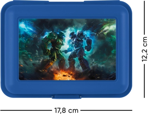 Predstavujeme inovatívny box na desiatu pre všetkých milovníkov sci-fi a robotov. Tento modrý plastový desiatový box kombinuje štýl s praktičnosťou. Je vybavený bezpečným uzatváraním na jeden zámok, ktorý zaistí, že vaše jedlo zostane bezpečne vo vnútri. Pomocou deliacich priehradok možno ľahko oddeliť rôzne druhy pokrmov pre čistý a organizovaný obed.