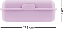 Tento praktický plastový box na desiatu v atraktívnej fialovej farbe je ideálny na každodenné stravovanie v škole, v práci alebo na cestách. Krabička ponúka dostatočný priestor pre vaše obľúbené desiaty a navyše má deliacu prepážku, ktorá umožňuje oddelené ukladanie potravín. Vezmite si so sebou rôzne potraviny, bez toho, aby sa miešali.