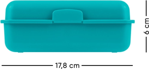 Urobte si zo svojej prestávky štýlový okamih s naším boxom na desiatu Duha v tyrkysovej farbe. Tento funkčný plastový box je ideálny pre každodenné použitie vďaka jednému zámkovému uzatváraniu a praktickej vnútornej deliacej stene. Box je navrhnutý tak, aby bol odolný a ľahko prenosný, čo ho robí skvelým pomocníkom pre školu i prácu.