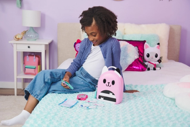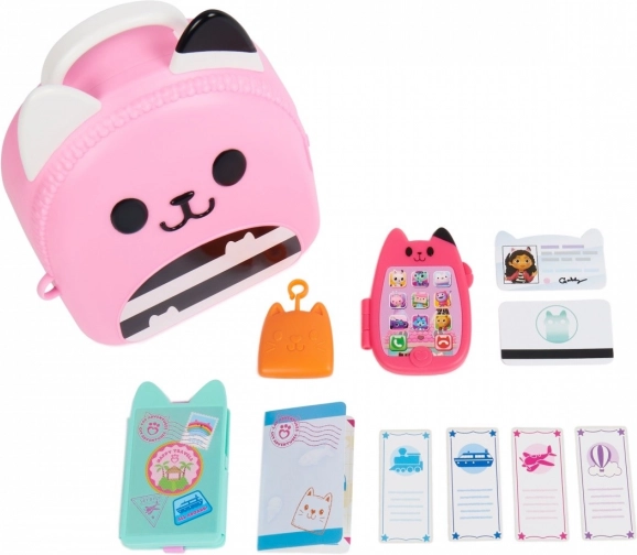 Pripravte sa na vzrušujúce výpravy s cestovnou sadou Batoh. Táto 11-dielna sada je nevyhnutnou výbavou pre fanúšikov seriálu DreamWorks Gabi's Cat House, ktorí sa radi hrajú na prezliekanie. Obsahuje mobilný telefón s hračkami, ktorý sa dá zložiť a pojme mačací prívesok na kľúče, Gábikinu identifikačnú kartu, prívesok s kompasom, cestovnú peňaženku, do ktorej sa zmestí hračkársky pas a cestovné lístky, a super roztomilú škatuľku na hračky v tvare mačky so špeciálnymi úchytmi, do ktorej sa zmestia všetky úžasné hračky zo škôlky. Každý kus sady bol špeciálne vyrobený s autentickým dizajnom a štýlom, takže vyzerá presne ako Gábikina cestovná výbava v seriáli. Deti si zamilujú pobiehanie po dome a predstieranie, že cestujú po svete rovnako ako Gabi. Pre ešte viac vzrušujúcich dobrodružstiev sa poobzerajte po fotoaparáte, ktorý sa do kontajnera tiež zmestí, takže sa môžete zabávať fotografovaním počas cestovania (fotoaparát sa predáva samostatne). Ak chcete získať posledné prekvapenie, naskenujte QR kód na obale cestovnej sady a získajte prístup k bezplatnej aplikácii Gabi's Cat House (k dispozícii pre iOS a Android). Plyšové hračky, bábiky, figúrky a sady Gabi's Cat House sú ideálne hračky pre dievčatá a chlapcov, ktorí radi využívajú svoju fantáziu a vytvárajú si vlastný svet domčekov pre bábiky, takže sa pripravte na nekonečné dobrodružstvá s Gábikinou cestovnou sadou na cestách.