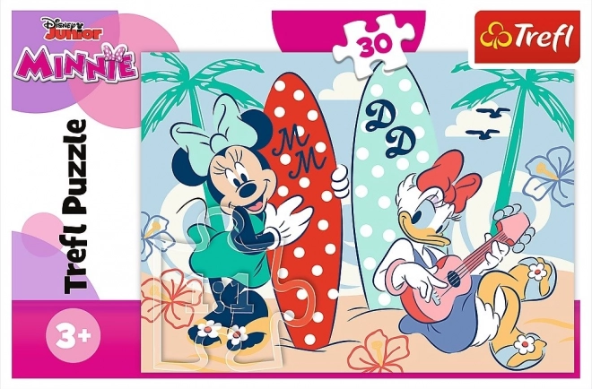 Zložte si tento roztomilý obrázok obľúbenej postavy Minnie z Disney sveta. Puzzle obsahuje 30 dielikov, čo je ideálny počet pre mladšie deti. Veľkosť zloženého puzzle je približne 27 x 20 cm, čo umožňuje ľahkú manipuláciu a skladovanie.