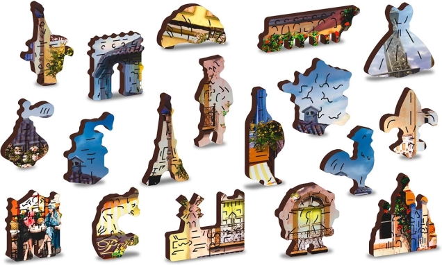 Zábava pri skladaní drevených puzzle WOODEN CITY je zaručená vďaka ich špeciálne tvarovaným dielikom, ktoré ponúkajú unikátny skladací zážitok. Prvky puzzle zahŕňajú dieliky v tvare zvierat, stavieb a predmetov, ktoré je možné použiť ako malé figúrky. Obojstrannosť puzzle umožňuje skladanie ako podľa obrázka, tak podľa tvaru, čo poskytuje väčšiu výzvu.