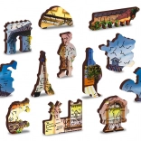Puzzle obsahuje dieliky, ktoré predstavujú známe stavby, zvieratá a predmety podľa tematického motívu.