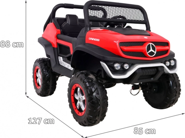Mercedes Benz Unimog je elektrické auto pre deti, ktoré prináša vzrušujúcu jazdu vďaka svojmu silnému pohonu 4x4. Konštrukcia je inšpirovaná skutočnými off-road vozidlami a obsahuje realistické detaily vrátane LED svetiel a ikonického loga značky. Vďaka možnosti prepínania medzi pohonom dvoch alebo štyroch motorov ponúka flexibilitu pre rôzne terény.