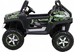 Dizajn auta s maskovacou potlačou umožňuje nielen štýlovo zapadnúť do prírody, ale tiež ponúka jedinečný vzhľad, ktorý očarí každého malého dobrodruha.