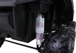 Bezpečnostné pásy a pohodlné sedadlo z eko kože zaručujú pohodlie a bezpečnosť. Autíčko obsahuje LED svetlá, ktoré osvetlia cestu vpredu i vzadu, a navyše je vybavené regulovateľným zadným odpružením pre ľahké prekonanie prekážok.
