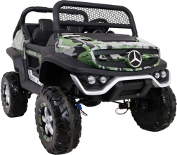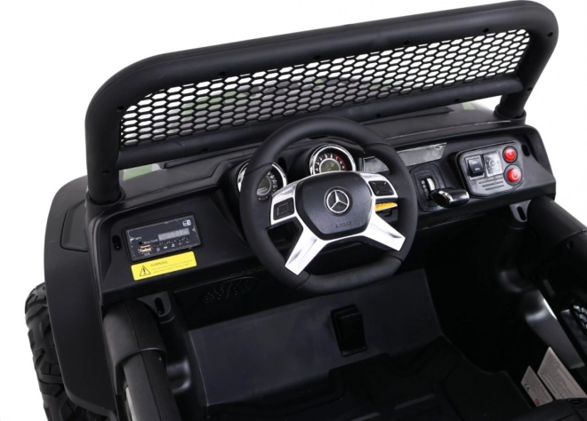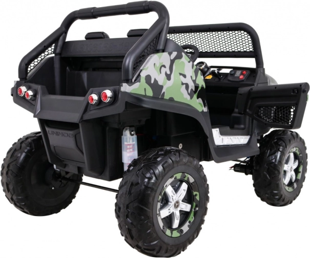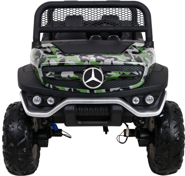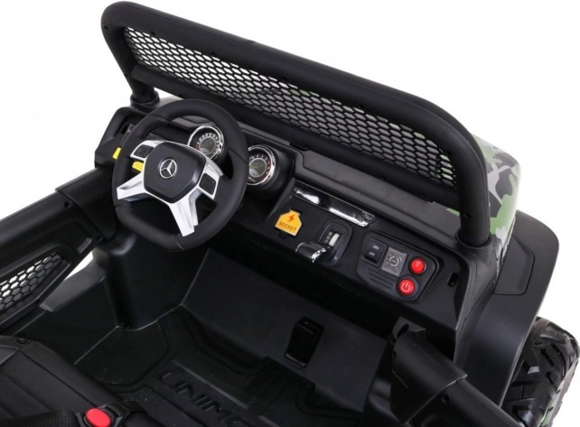 Unimog pre deti je vybavený štyrmi silnými motormi, ktoré zaisťujú hladký chod aj na nerovných terénoch. Vďaka pamäti MicroSD, USB a Bluetooth môže dieťa počas jazdy počúvať svoju obľúbenú hudbu.