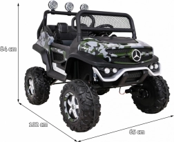 Predstavujeme Mercedes Benz Unimog pre deti, ktorý kombinuje bezpečnosť a zábavu. Toto detské auto vyniká svojou robustnou konštrukciou, ktorá je doplnená štýlovými detailmi inšpirovanými skutočnými terénnymi vozidlami. Pohon 4x4 je vybavený štyrmi motormi o výkone 35W, čo umožňuje jazdu na nerovné aj hladké povrchy.
