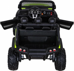 Detské vozidlo obsahuje moderný audio panel, LED svetlá a otváracie dvere. Je vybavené diaľkovým ovládaním s funkciou bezpečnostného zastavenia.