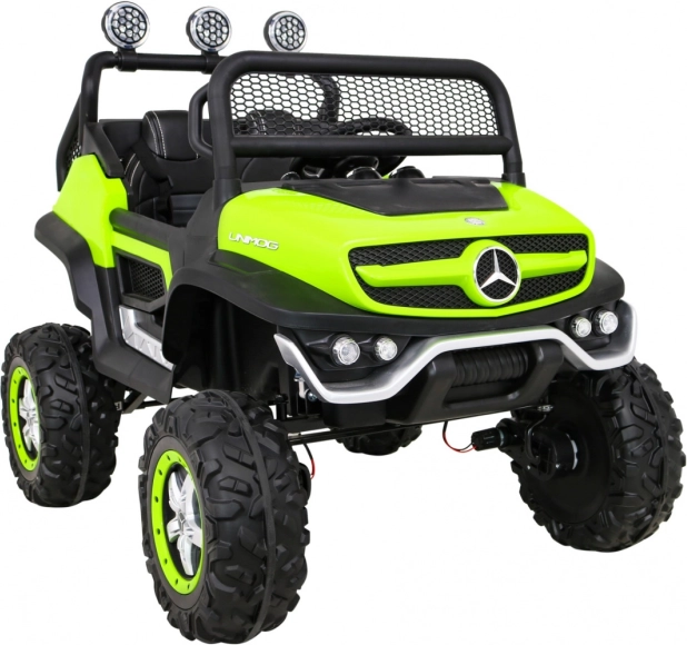 Unimog od Mercedes-Benz je určený pre deti, ktoré milujú dobrodružstvá a off-road jazdy. S výkonnými 4 motormi o výkone 35W a nastaviteľným odpružením je toto auto ideálnym partnerom na každé hravé výpravy.
