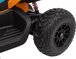 Štýlová detská elektrická štvorkolka McLaren ponúka silný výkon, komfort a bezpečie pre malých jazdcov. Vďaka pohonu 4×35 W, batérii 12 V 10 Ah a plynulému rozjazdu zvládne aj nerovný terén. Veľké EVA kolesá s priemerom 31 cm a odpruženie zabezpečujú tichú a stabilnú jazdu, zatiaľ čo LED svetlá a audio panel MP3/USB/AUX sa postarajú o zábavu. Rodičia ocenia diaľkové ovládanie 2,4 GHz s tromi rýchlosťami a núdzovým tlačidlom STOP.