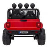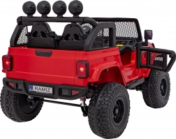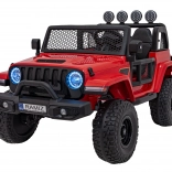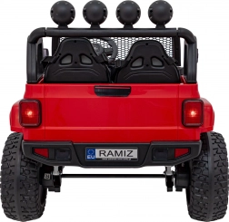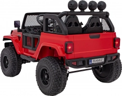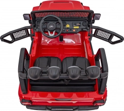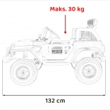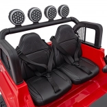 Robustné detské elektrické auto do terénu ponúka pohon 4x4 (4×35 W), batériu 12 V 14 Ah, mäkké EVA kolesá a diaľkové ovládanie 2,4 GHz s bezpečnostným tlačidlom STOP. Dve sedadlá z ekokože, LED osvetlenie a audio panel s USB/MP3/AUX zaručia pohodlnú a zábavnú jazdu aj mimo spevnených ciest.