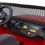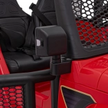 Dva samostatné sedáky z ekokože s bezpečnostnými pásmi poskytujú pohodlie pre malých vodičov. Realistický zážitok podčiarkujú predné a zadné LED svetlá, podsvietené štartovacie tlačidlo a otváracie dvere. Audio panel s MP3, USB a AUX vstupom prehrá obľúbené pesničky, zatiaľ čo tlačidlá na volante ponúknu klaksón a melódie.