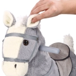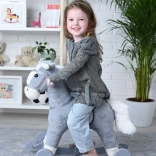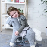 Roztomilý plyšový hojdací koník 2v1 s kolieskami v sivej farbe poteší každého malého jazdca. Vďaka kombinácii hojdania aj jazdy ponúka dvojnásobnú zábavu, zatiaľ čo mäkký plyš a stabilná drevená základňa zabezpečujú pohodlie a bezpečie. Nosnosť 50 kg, pre deti od 3 rokov, s certifikáciou CE.