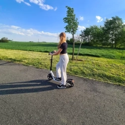 - Regulácia výšky riadidiel na "klik" – kolobežka je vybavená 3-stupňovou reguláciou výšky riadidiel pre maximálne pohodlie. Jednoduchým stlačením tlačidla zmeníte výšku.