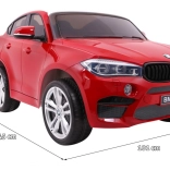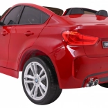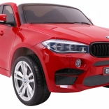 Detailne spracované SUV s licencovaným vzhľadom BMW X6 M, lak v žiarivej červenej farbe a funkčné LED svetlá pre maximálny efekt.