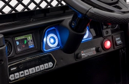 Multimediálny panel s MP3, USB, AUX a Bluetooth prehrá obľúbené pesničky, zatiaľ čo tlačidlá na volante pridajú zábavné zvuky. Reálny zážitok umocnia LED svetlá (predné, zadné aj horné), podsvietené štartovacie tlačidlo so zvukom motora a otváracie dvere. Pohodlné sedadlo z čiernej eko kože s bezpečnostnými pásmi zaistí komfort aj bezpečie.