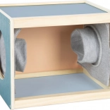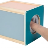 Naša hračka ponúka všestrannú a dlhotrvajúcu zábavu vďaka dvom bočným otvorom, ktoré umožňujú deťom dotýkať sa rôznych predmetov vo vnútri. Skvele sa hodí ako pamäťová hra, hra na hľadanie alebo rozpoznávanie. Tento box je vyrobený z dreva a má moderný farebný dizajn.